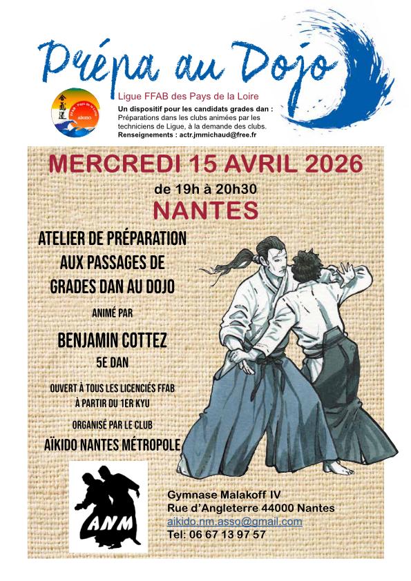le Mercredi 15 avril de 19h00 à 20h30 Gymnase Malakoff IV Nantes 44 intervenant Benjamin Cottez. Affiche
