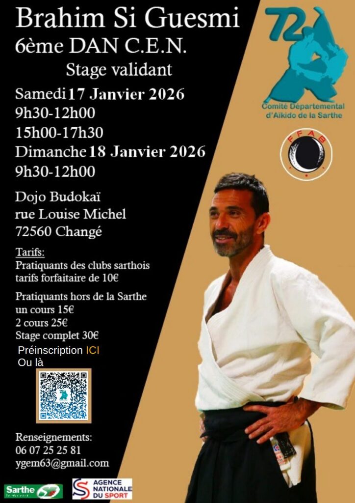 Xavier Dufau 6ème Dan CEN Vendredi 13, Samedi 14, Dimanche 15 Mars 2026 5 Promenade Newton 72100 Le Mans