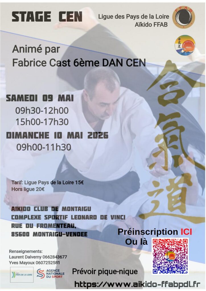 Stage yudanshan Armelle Blanloeil Benoit Lepeltier Francis Charpentier samedi 11 avril 2026 36 impasse Joseph Guillemot La Roche sur Yon 85000 Apporter votre pique nique